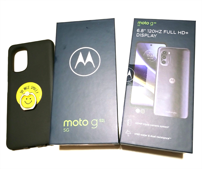 ●ケースはいつものシリコンカバー。買う時は保護フィルム共々g52j無印と同じサイズで大丈夫。実はMotorolaの機種は本体にシリコンカバーが付属されている物が多く、