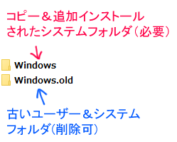 ・インストール後はローカルドライブ(C)に「Windows.old」というフォルダが作られているが