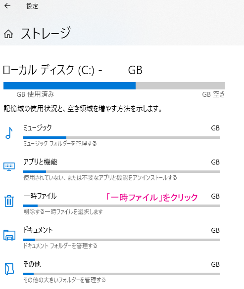 他の一時ファイルも消す場合「ダウンロード」「ゴミ箱」フォルダに何か保管してる人はうっかり消さないよう注意)