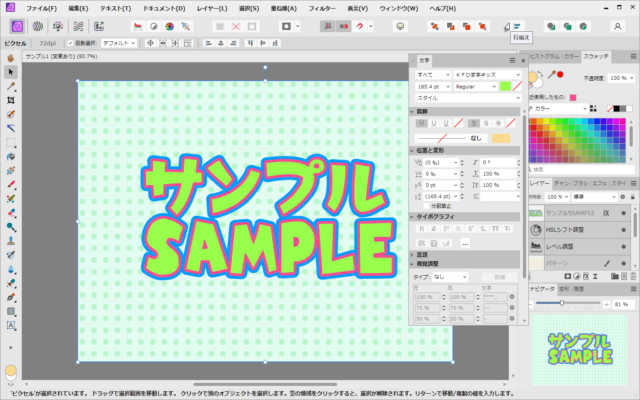 不便に思う点はパターンやテクスチャ周りの機能がイマイチなのと縦書き非対応な点か。結局パターンオーバーレイ使えるフォトショか素材が潤沢なクリスタと併用する形になる。