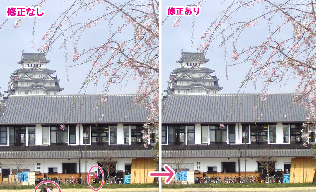 簡単なモノならインペインティングブラシツールでパパッと出来る。