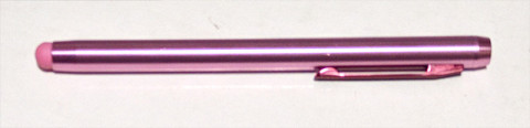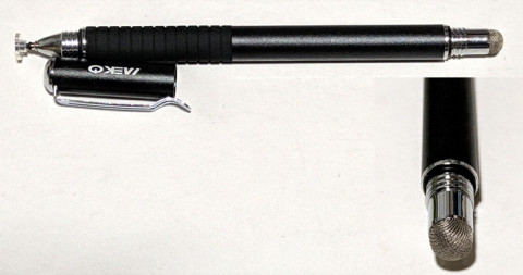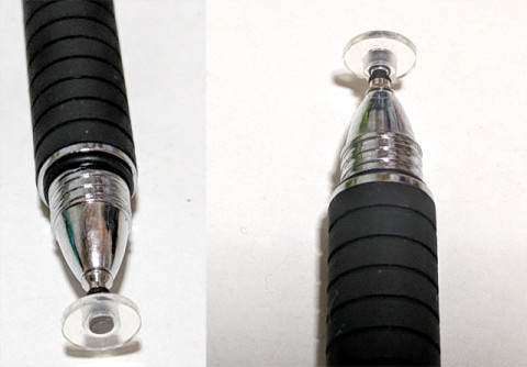 本体の画像とペン先のノーマル面。フタはねじ回すタイプでスッポ抜けにくい。レオタードやドレスで使うトリコット地にも似た導電繊維が張られてある。