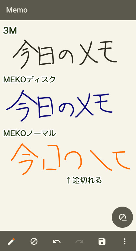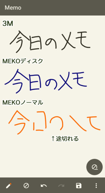 手書きメモアプリで3点なるべく同じ筆圧で書いてみた。(3M、MEKOディスク、MEKOノーマル)